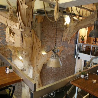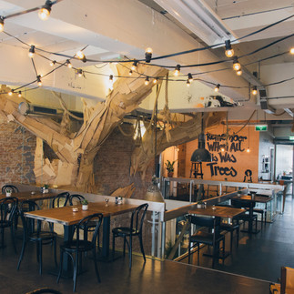 Somewhat hidden in the city centre of Rotterdam, Backyard is exactly that: The backyard of Rotterdam. With its sustainably designed building, it offers you a place to relax between a sea of plants, vintage furniture, a 7-metres long velvet couch (!) and a tree inside (!!), to come together and enjoy food - good food.