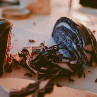 You should notice on the cabbage that it has loosened its structure. Drain the water that leaked out of the cabbage and place the cabbage in a kitchen strainer (you can also perform this step in a few parts). Press the cabbage strongly against the walls of the kitchen strainer to squeeze the extra remains of water out of the cabbage. Press in a straight and firm movement. Do not massage or squash the cabbage to prevent it from rubbing against itself- you don’t want it to become mushy and soggy, but rather to stay firm and compact.