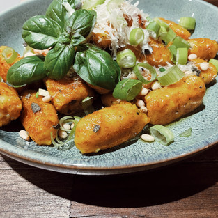 Proceed as you like! You can toss your gnocchi immediately after cooking with pesto, sauce, etc. Or you can pan-fry them until crispy. (Pro-tip: use vegan butter to fry them up and add fresh sage towards the end of the frying process. Toast some pine nuts to serve and enjoy.)